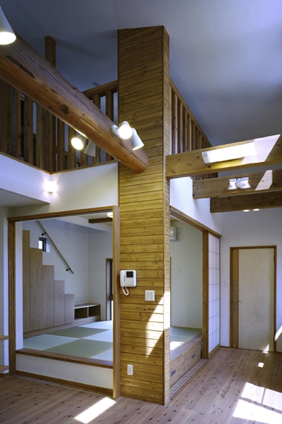 ロフトを併せ持った吹抜空間にハイサイドライトからの柔らかい光がこぼれます