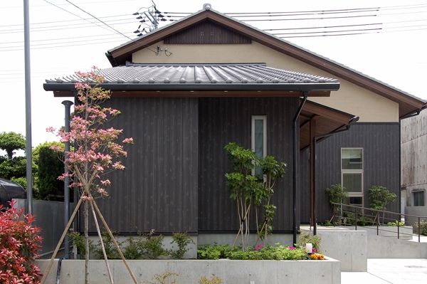 そんな剛の構造体を隠すかのような佇まいとして京都の町家的な外観デザインを提案しました