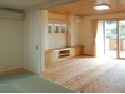 内装的には無垢材を多用しました床や壁、天井そして建具に至るまで杉という素材の色をあえてそのまま表し木の風合いを素直に表現しています
