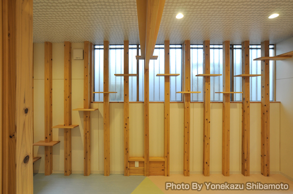 - いわゆる保護ネコ施設で、それまで事務所として使われていた建物を全面改修しました。長屋の一部を取り壊したり、小規模な増築を行ったりのリノベーションとなります。主役の猫ちゃんの居場所はシェルターという部屋ですが、キャットステップやキャットウォーク等を設け、思う存分遊んでもらえるように考えました。そしてふれあいに訪れた人も落ち着けて癒しを感じとれる場に。面積的に大きくは作れませんでしたが、最大限広さ感を与えられる空間を目指して設計しました。内部は木をふんだんに使い、素朴さやぬくもり感を演出、主役の猫ちゃんにはもちろん、ふれあいに訪れる方々にも喜んでもらえる施設になればと願っています。