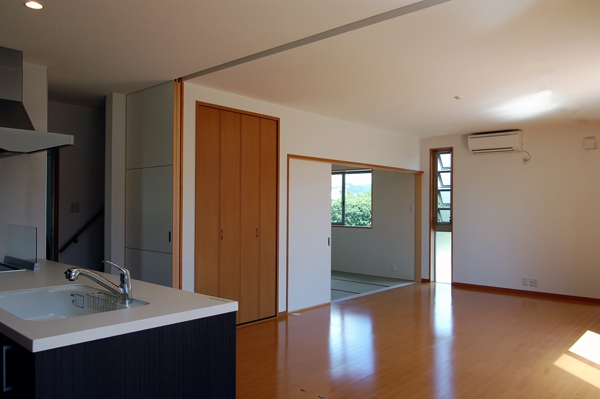 内部はフレキブル性を重視しましたリビングを中心にDK及び和室を一体に配置しています