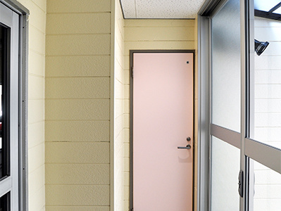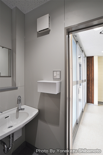 - 現状1つのトイレ区画しかなく、いわゆる男女共用の区画でしたが、不便さを感じることも多く、旧倉 庫を改修し、女性専用トイレとしてリノベーションしました。但し、既設各室を全面的に改修するので はなく、旧倉庫周辺のみを改修。その上で今回の目的を達する設計内容としました。それまでなかった 風除室を設け、そこをトイレとの連絡通路にし、無駄のない空間利用を計っています。そんな中でも、 デザインには気を配りました。杉板の化粧造作壁を設けたり、木目の風合いをトイレブースで再現した りなど、そこにいることで安堵感を得られるようなデザインです。 多くの方々に長く親しまれ、利用していただけるトイレであってほしいものです。