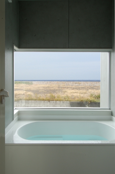 浴室の詳細です。やはりロケーションを有効に利用するということで海が見える形としています。昼間でもついついお風呂に入りたくなってしまうかも(笑)